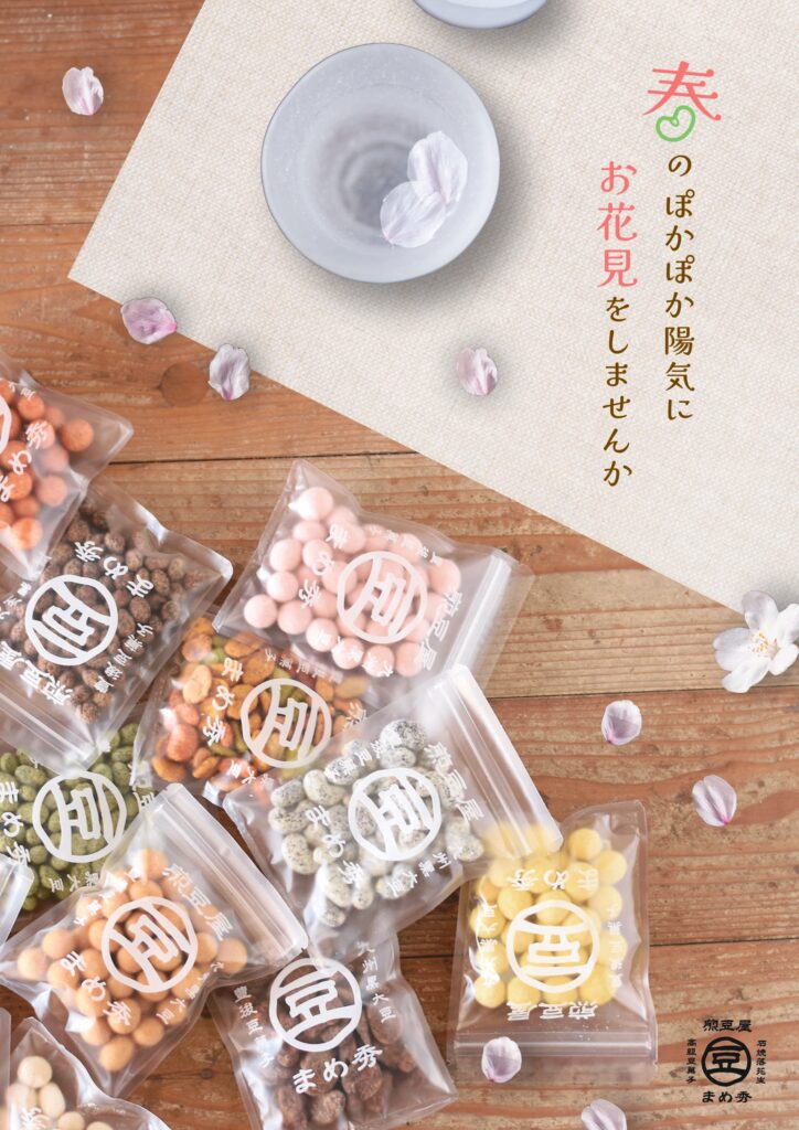 今年の春は、まめ秀の美味しい豆菓子と一緒に、ぽかぽか陽気を存分に楽しみましょう!